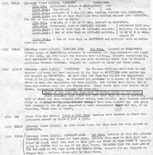 ・存在と一部の内容だけが知られていた「米中連合軍作戦日誌」の実物、初めて確認・ソウル大人権センター研究チーム、米文書記録管理庁の現地調査を通じて発掘・慰安婦証言に立証文書出現…「虐殺否定」の日本政府への反論根拠に 日本軍の慰安婦銃殺を記録し…
